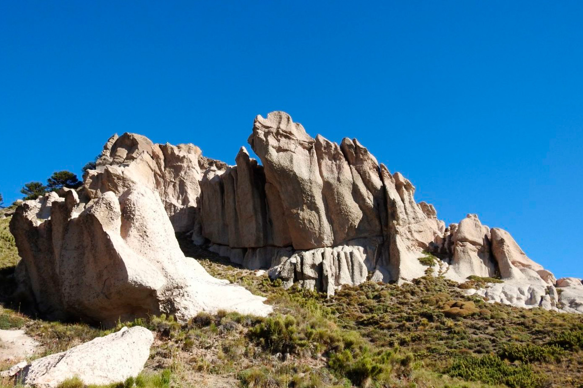 A unos 1.500 m s.n.m. se encuentra este paso que conecta los valles de Pehuenco y Tralilhue, a través de un gran cordón montañoso formado por sedimentos fluviales y tobas volcánicas de la Formación Mitrauquén (del Mioceno superior de hace 9 a 8 millones de años antes del presente). En su ladera norte se expone una gruesa capa de toba volcánica (depósito de piroclastos), sobre una superficie de casi 25 hectáreas, generando un verdadero campo de roca blanca con peculiares formas debido a la acción erosiva del viento y la lluvia.